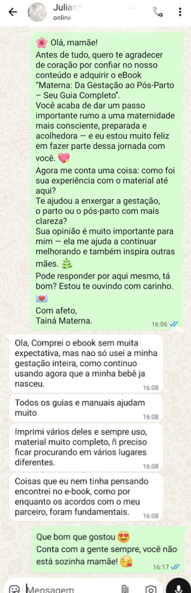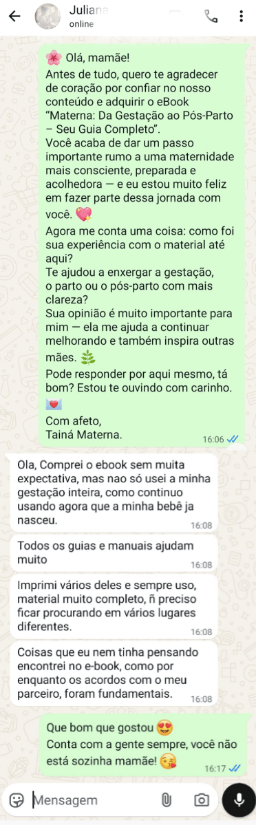 Teorias não ajudam quando o bebê chora ou quando seu corpo muda sem avisar. Por isso, o conteúdo foi criado para ser aplicável de verdade: exercícios para o parto, listas objetivas, guias práticos e protocolos para o pós-parto. Você não precisa interpretar — só aplicar. É como ter uma amiga experiente ao lado, dizendo: “Faz assim que dá certo.”